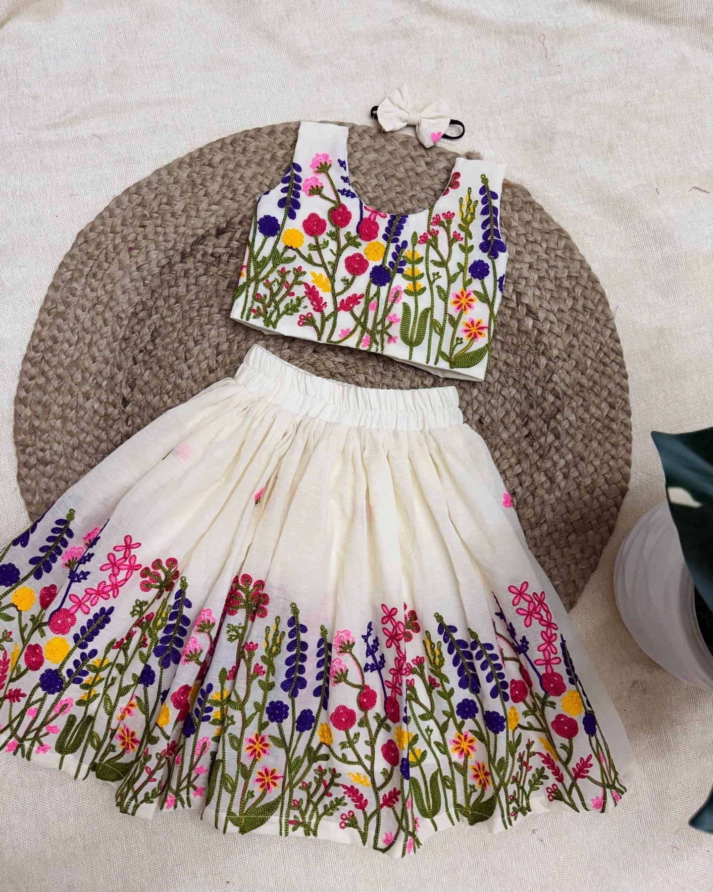 Ivory Floral Embroidered Kids Lehenga Set Ivory Floral Embroidered Kids Lehenga Set