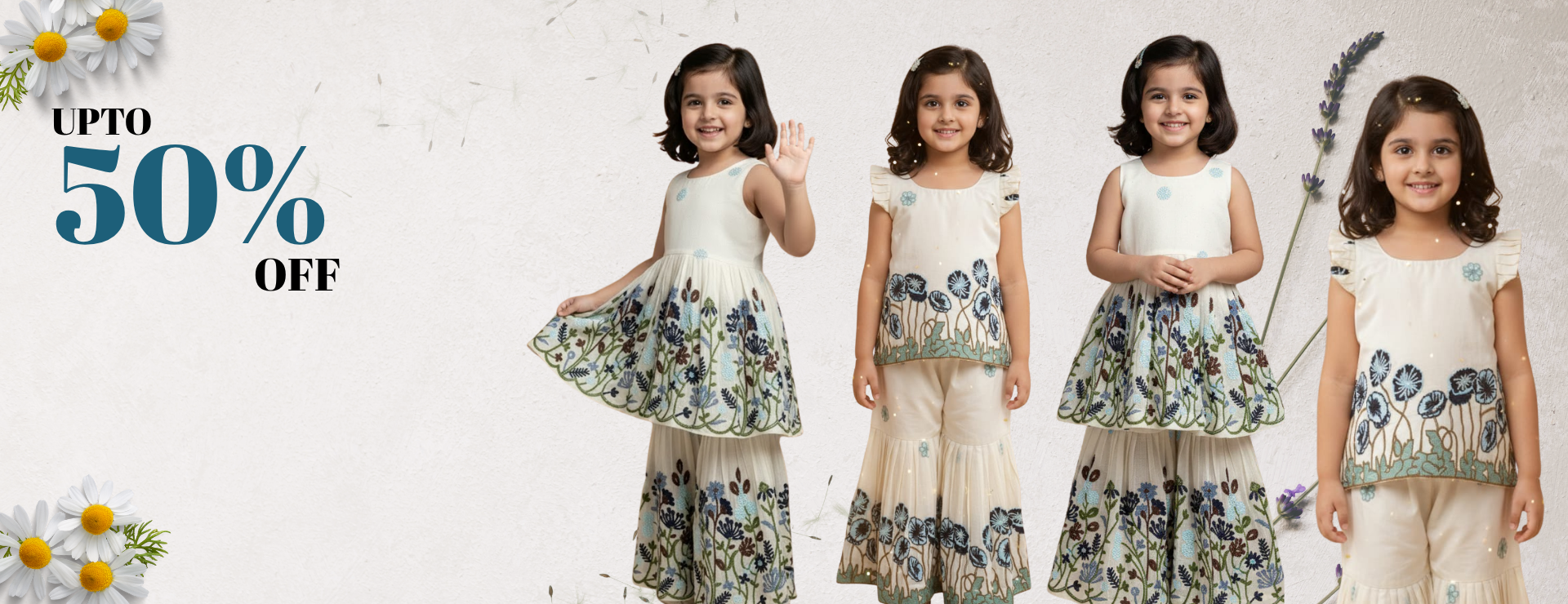 Ivory & Pink Lotus Embroidered Co-ord Set for Girls